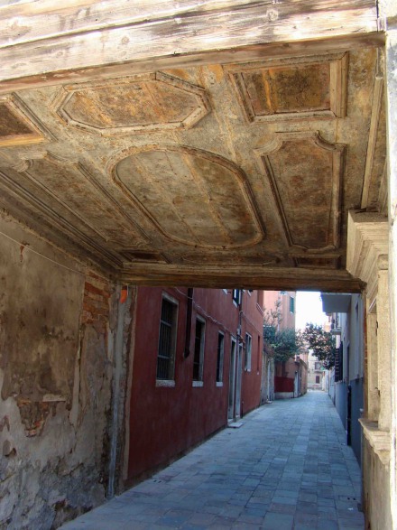 Si le Ramo de le Chioverete ne présente aucun intérêt - encore fallait'il y aller pour le savoir -, la Calle de le Chioverete est un peu plus pittoresque, et les maisons portent les traces de l'érosion.