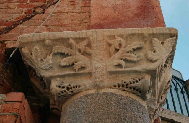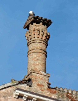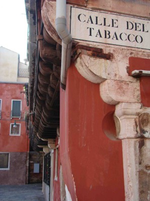 La curiosité nous pousse à aller faire un tour dans la Calle del Tabocco jusqu'à la Calle del Magazen. Ce qui permet de découvrir une cheminée extérieure et une belle formelle.