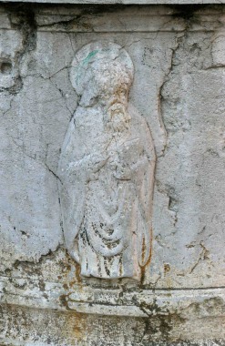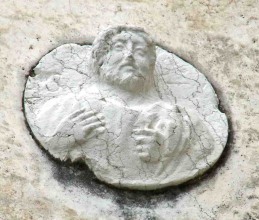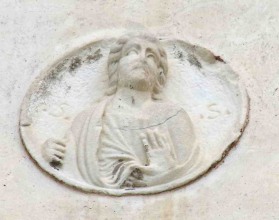 Buste de Saint Jean au dessus de la porte d'entrée.