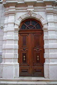 Un peu plus loin, dans la Calle de la Case Nove, rue sans grand intérêt, on trouve cette porte surmonté d'un fronton triangulaire.
