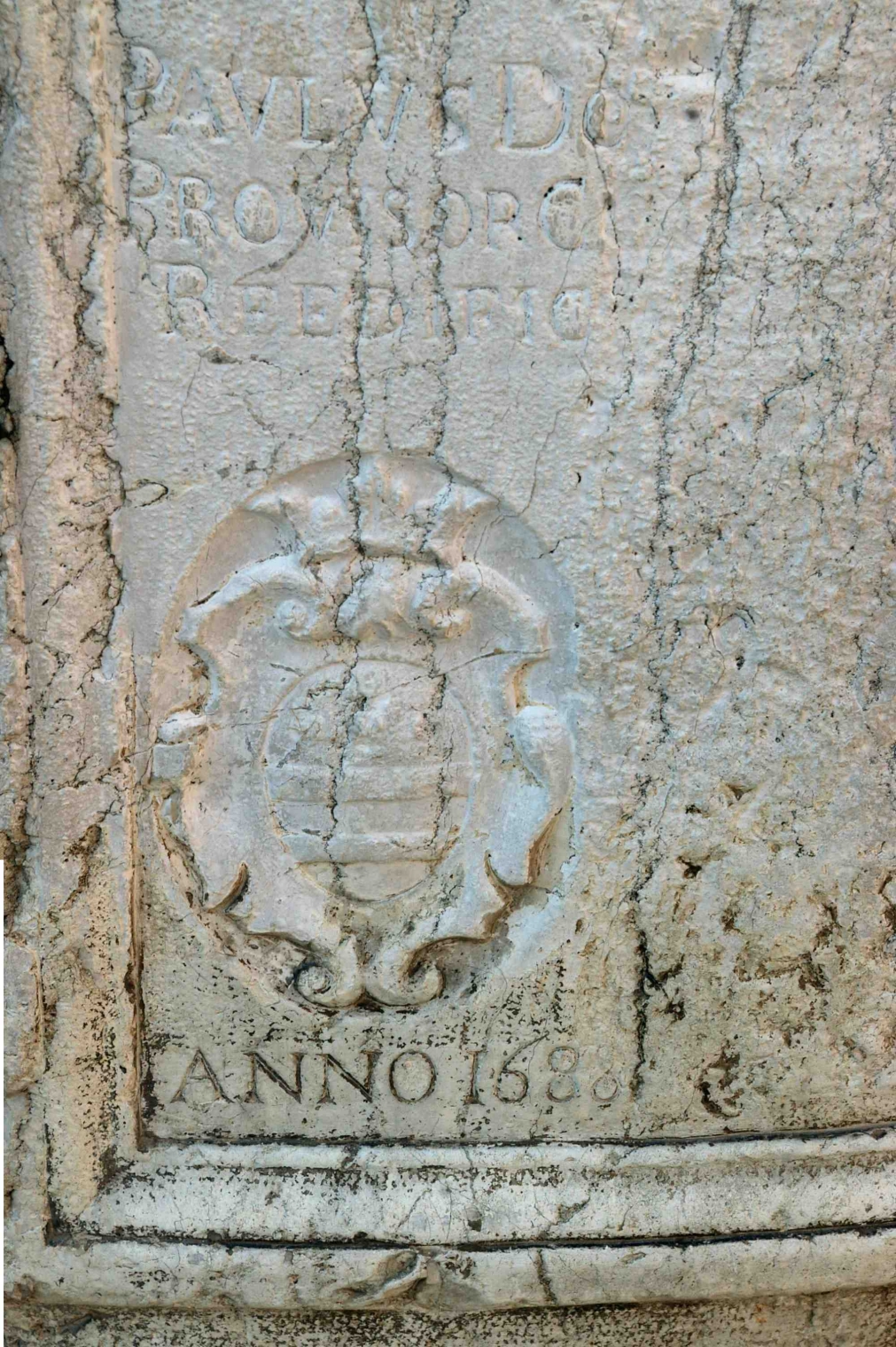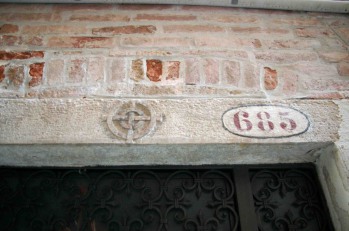 Avant de quitter le Campiello San Simeon Picolo, nous pouvons découvrir sur le mur du 688, une plaque en Terra Cota malheureusement amputée d'une partie.