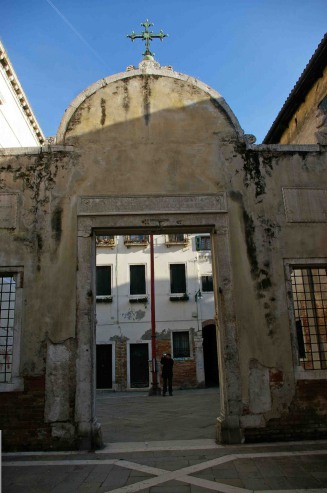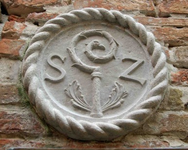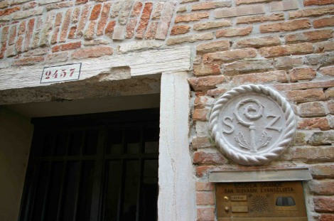 Sur le Corte Vitalba s'ouvre les bureaux de la Scuola Grande Giovanni Evangelista. La patère représente le sigle de la Scuola : SZ pour San Zuan