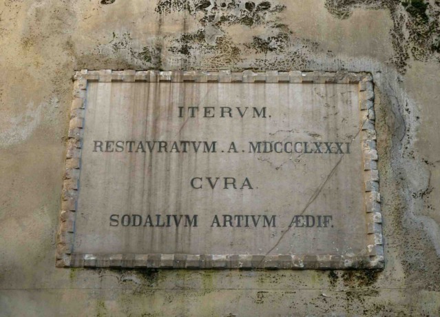 Sur le revers du portique, une plaque indique l'année de la dernière restauration.