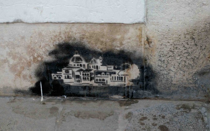 Dans le soubassement de la maison un dessin au pochoir qui nous fait presque oublier les graffitis voisins.