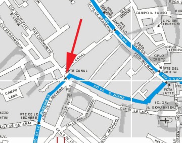 Il relie la Calle Sechera au Nord (Sestiere Santa Croce), à la Calle de la Laca au Sud (Sestiere San Polo).
