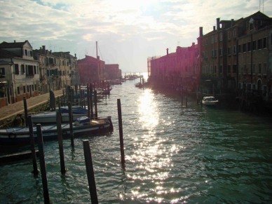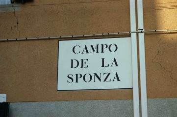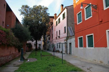 Franchi le Rio de la Palada et en se dirigeant vers la Lagune, vous decouvrirez le Campo de la Sponza, petit espace herbeux entre des constructions anciennes à droite et modernes à gauche.
