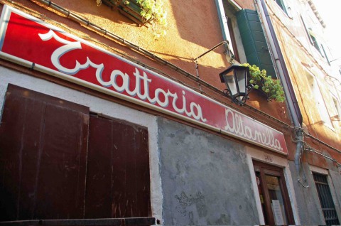 Empruntez tout de suite à gauche, sous un Sotoportego, la Calle de le Erbe où vous pourrez trouver une trattoria - qui ne doit être fréquentée que par des habitués, vu l'absence de signalisation sur le Fondamenta, et une niche votive .