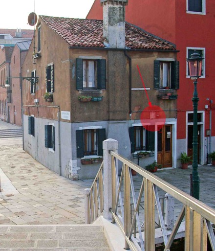 Au 383 sur le Fondamenta de la Palada, une formelle représentant un petit oratoire et un ferro de gondole donne un air de déjà vu pour les connaisseurs de Venise.