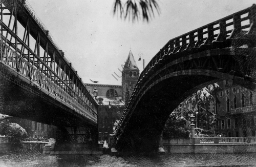 Un premier pont en fer, construit par l'architecte anglais Alfred Neville fut inauguré le 20/11/1854. Devant une dégradation rapide, il fut décidé de construire un nouveau pont. Le projet de pont en pierre ne fut jamais réalisé. Un pont "provisoire" en bois, oeuvre d'Eugenio Mozzi fut inauguré en 1933. Ce pont fut restauré en 1985/1986 par ajout d'éléments métalliques.