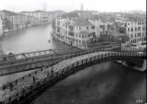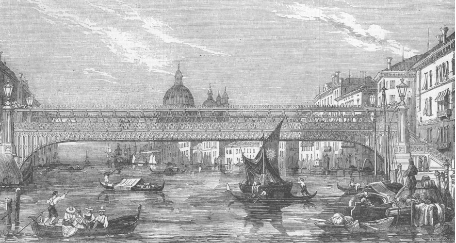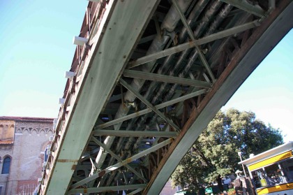 A l'origine tout en bois, le Ponte de l'Accademia a bénéficier de renforcements nombreux et variés
