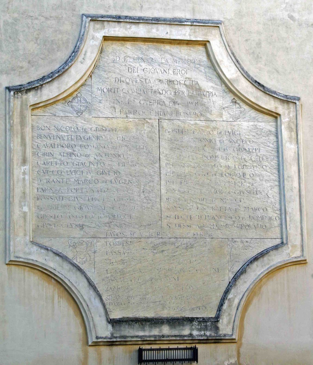 Il n'existe pas à Venise de monuments aux morts comme on peut les connaître dans les communes de France. Les victimes des guerres mondiales sont honorées dans le cadre des paroisses par des plaques apposées sur un mur de l'église paroissiale.