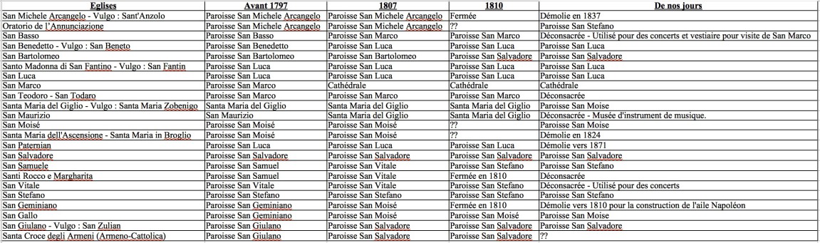 Evolution des églises du Sestiere San Marco de la chute de la Serenissime à nos jours :