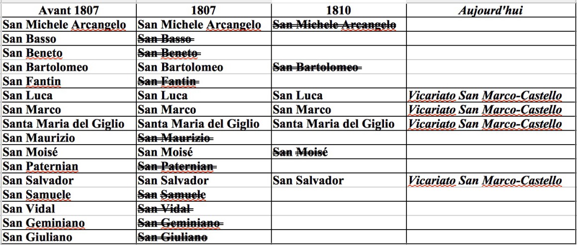 Evolution des paroisses du Sestiere San Marco de la chute de la Serenissime à nos jours :