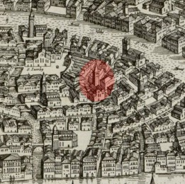 Le Campanile formait un seul et même corps avec une maison d'habitation ; derrière, un haut clocher à flèche avec une chambre des cloches à baies triples.