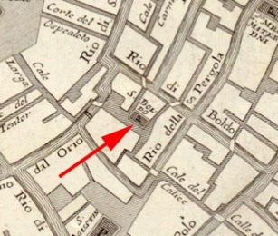 D'abord dédiée à Sainte Agathe, l'église fut fondée en aux alentours du XIème siècle par les familles Giustio et Tron. Elle brule vers 1105 et fut reconstruite puis agrandie en 1305. Elle fut ensuite dédiée à Saint Ubald - San Boldo. Reconstruite une nouvelle fois en 1735 sur des plans de Giorgio Massari. Elle fut fermée en 1808 puis démolie en 1826. N'en reste que le Campanile englobé dans une maison.
