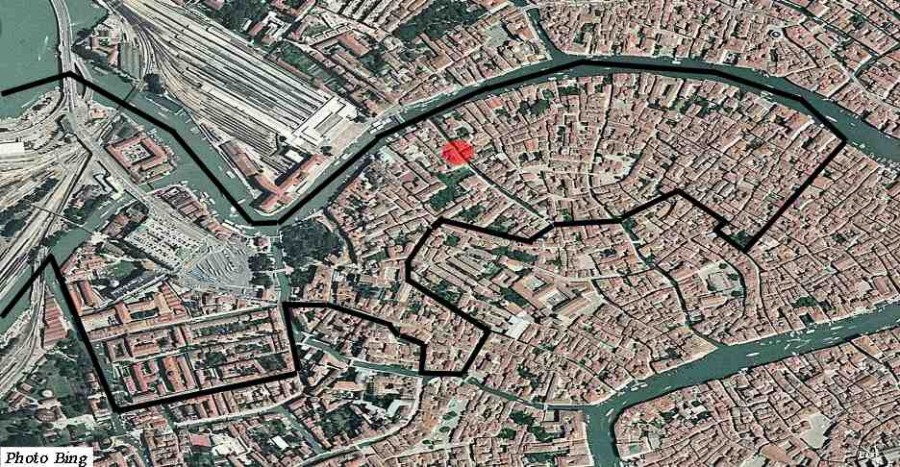 Dans le Sestiere Santa Croce, sur le Rio Marin, relie la Calle Longa Bergama à l'Ouest et le Campo Santo à l'Est.