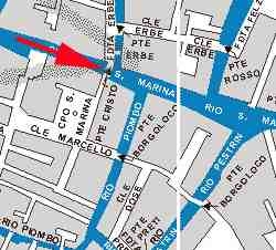 Sur le Rio de Santa Marina, il met en relation le sestiere de Cannaregio au Nord et le sestiere de Castello au Sud.