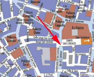 Sur le Rio de San Lorenzo, relie le Campo San Lorenzo à l'Est au Fondamenta San Lorenzo à l'Ouest.