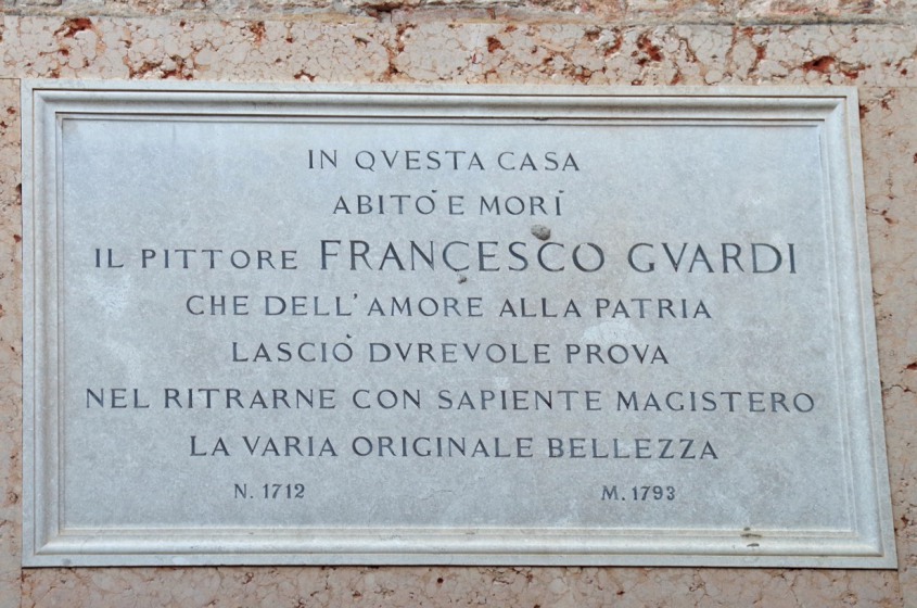 Francesco Guardi fut un peintre vénitien, né dans une famille vouée à la peinture, très célèbre pour ses "vedute", un genre à l'intérieur de la peinture de paysages. Domenico Guardi (1678-1716), son père, transmit le talent artistique aux trois fils: Francesco, Niccolò e Gian Antonio. Francesco n'a connu une rénommée de caractère individuelle qu'au XXème siècle, ayant été toujours considéré comme un simple représentant de l'atelier de famille. Il a été écrit, à propos des peintres de la famille Guardi, qu'ils peuvent être considérés comme les derniers de l'école vénitienne, dans sa forme classique.