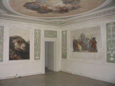 A l' intérieure se trouvent de grandes peintures, réalisés entre les XVIII et XIX ème siècles, une série de stuc de Joseph Castelli et une série de fresques néoclassiques de Giuseppe Borsato (1771-1849) et Giambattista Canal (1745-1825).