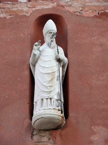 Cette statue scellée dans un mur au 2011 Campo San Polo proviendrait de l'église Sant'Agostin
