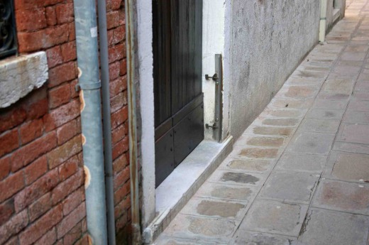 Après une petite pause, direction le Fondamenta dei Ponte Piccolo par la Calle Stratta Ferrando. Là aussi les habitants doivent se proteger de l'acqua alta.
