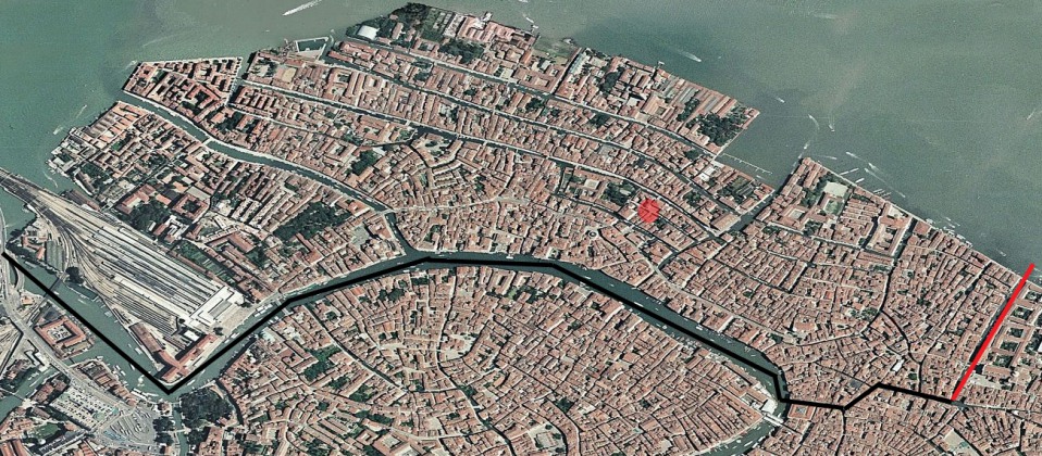 Sur le Rio del Trapolin, relie le Campo San Marziale au Nord, à la Calle Zancani au Sud.