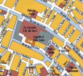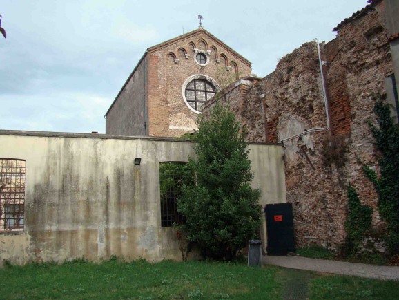 En 1318 fut fondé ici un monastère de l'Ordre des Servites de Marie (1). Les travaux de l'église commencèrent en 1330, mais le travail ne fut achevé qu'en 1474, avec la consécration en 1491. L'église a été conçu pour rivaliser avec San Zanipolo et les Frari. Un grave incendie a détruit la plupart des bâtiments du monastère en 1769. L'église et le monastère ont été supprimés en 1812 et presque totalement détruits. En 1821, il ne subsistait que la Cappella dei Lucchesi et deux portails, dont le portail gothique du 15ème siècle. Le site a été racheté par Canon Daniele Canal qui y fonda en 1864, avec Anna Maria Marovich, l'Istituto Canal Marovich ai Servi, une institution charitable pour les femmes sorties de prison. La Cappella dei Lucchesi a été reconstruit tout comme la chapelle de l'Institut. Le complexe abrite maintenant un foyer d'étudiants.
