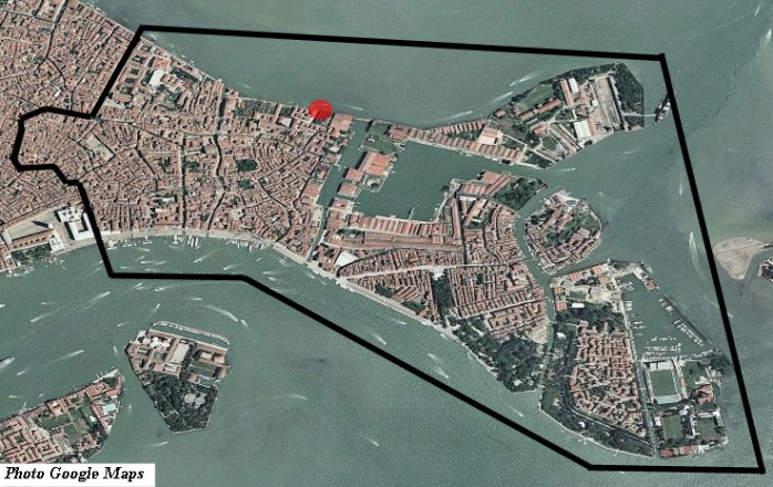 Sur le Rielo de l'Arsenal, relie le Fondamenta de la Case Nove à l'Ouest à la passerelle courant sur le mur Nord de l'Arsenal à l'Est
