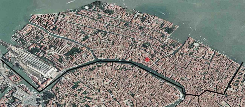 Sur le Rio de la Madalena, relie la Calle Correr à l'est à la Calle et au Fondamenta de le Colonete à l'Ouest
