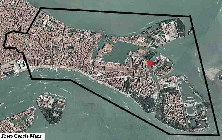 Sur le Canal de San Pietro, relie le Campo San Pietro à l'Est et la Calle Larga de Castelo à l'Ouest