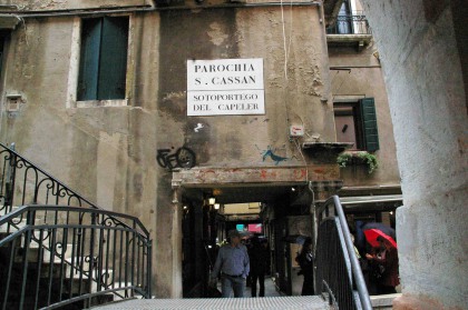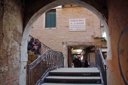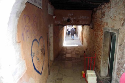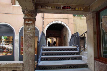 Sur le Rio de le Becarie, relie la Calle dei Capeler à l'Ouest, au Sotoportego de le do Spade à l'Est