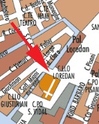 Sur le Rio de San Vidal, relie la Calle del Futariol à l'Ouest, au Campiello Loredan à l'Est.