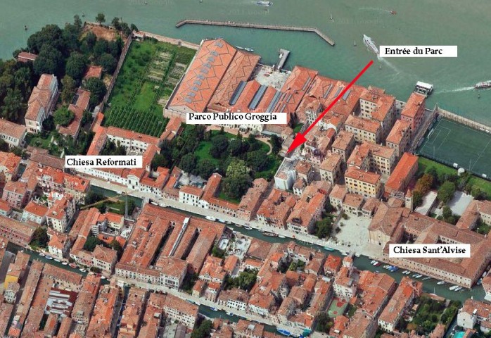 Le Parco Publico Groggia est situé dans le quartier Cannaregio, à quelques minutes de l'église de Sant'Alvise. C'est l'un des endroits les plus paisibles de Venise avec des banc, parfait pour se reposer après une marche dans la ville, pour une collation ou un pique-nique. A cet endroit s'élevait dans les années 1500 le Palazzo Dona avec un immense jardin qui s'étendait jusqu'à la lagune. En 1823, le bâtiment a été démoli et des maisons et un entrepôt furent construites au début des années 1900. Cet entrepôt devint le théâtre Groggia. La famille Grogia fit don de cet ensemble à une association. C'est maintenant une propriété communale. Le parc est aménagé de façons romantiques avec des fausses ruines reprenant sans doute des éléments de l'ancien Palais.