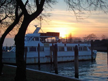 La rive ouest de Sacca Fisola est utilisée pour le stationnement de bateaux et vedettes de transport.