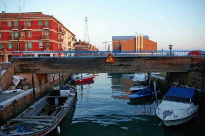 Alors pourquoi y aller? Parce qu' il y a une église en "béton tardif", quatre ponts, un curieux embarcadère pour ferries et surtout parce qu'il y a des Vénitiens qui y habitent, même si les habitations, de type HLM sont sans âme, et puis parce que dans un boui boui très couleur local, on peut y déguster le meilleur des chocolats chauds !