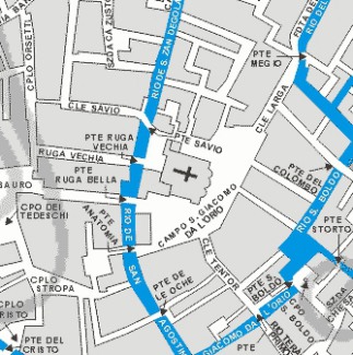 Sur le Rio de San Agostin, relie le Sotoportego de l'Anatomia à l'Ouest, au Campo San Giacomo da l'Orio à l'Est.