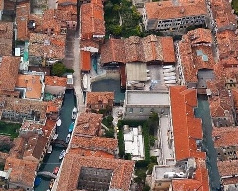 Vue inhabituelle de l'arrière squero - Photos prises du Campo San Trovaso par une porte entrebaillée