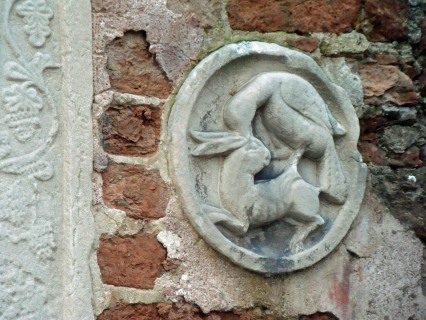 Sur le linteau de la porte de droite un bel ensemble de patères