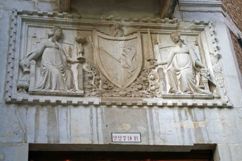 Soranzo- Pisani, blason bipartite des deux familles encadré
