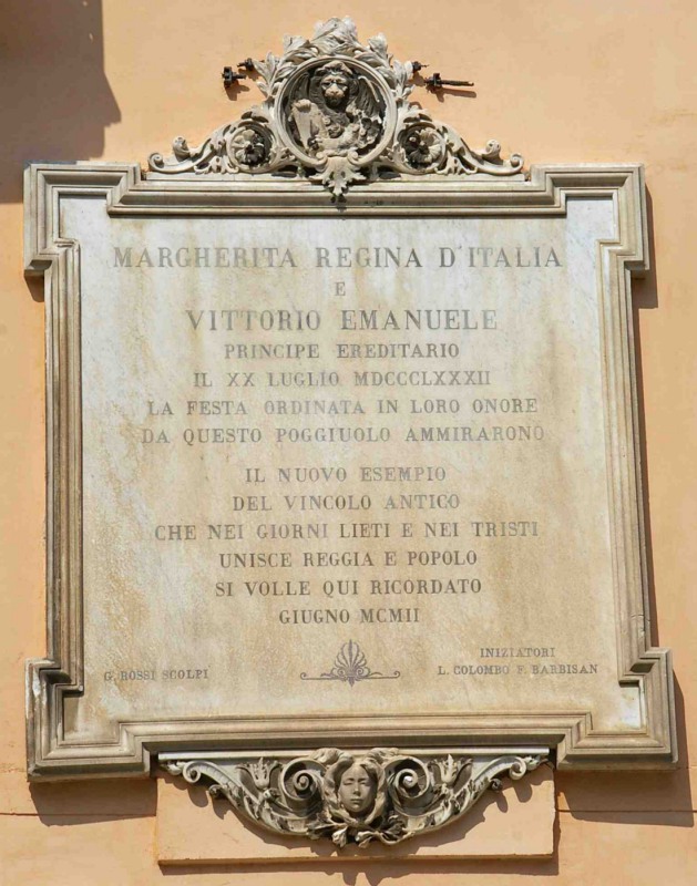 Marguerite de Savoie est née à Turin le 20/11/1851, elle épouse son cousin germain Humbert 1er, le 21/04/1868. Ils auront un fils, Victor-Emmanuel. Elle meurt le 04/01/1926 à Bordighera.