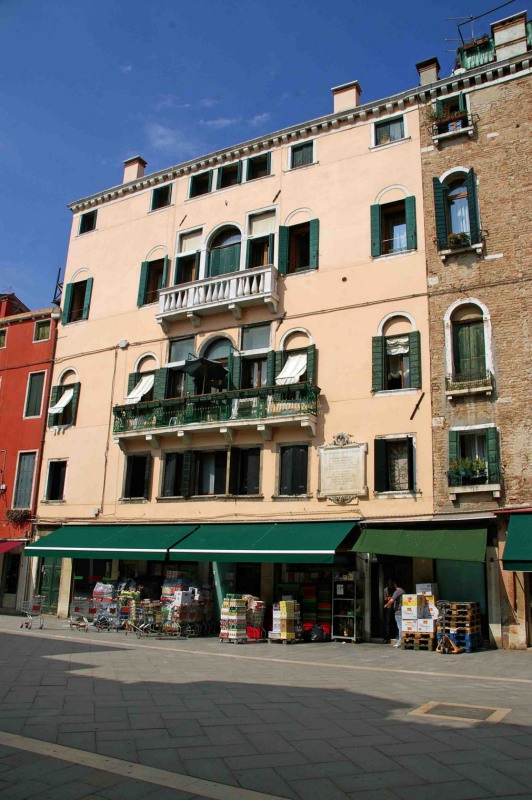 Via Garibaldi au 1797 Castello, au-dessus d'un Coop, plaque commémorant la visite de la Reine d'Italie, Marguerite, et de son fils, Victor-Emmanuel à Venise le 20/07/1882.