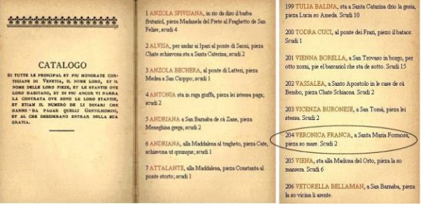 "Catalogue de toutes les principales et plus honorées courtisanes de Venise"