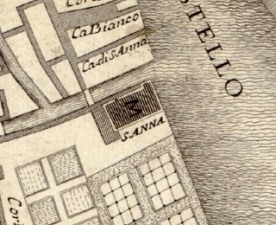 Vers 1240, un ermite de la Congrégation des Augustins, Giacomo da Fano, fut envoyé à Venise avec pour mission de fonder un nouveau monastère dans la ville. En 1242, il achète à la veuve de Piero del Pozzo, un grand terrain à l'angle entre le rio de Sant'Anna (à l'époque nommé Rio de Castelo) et le Canal de San Piero de Castelo. Avec l'autorisation de l'évêque de Castello, Piero Pino, un monastère et une église à trois nefs, qui était dédiée à Sant' Anna et Santa Catarina sont construits.