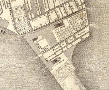 Pas de plan Barbari pour cette église qui n'était pas construite en 1500, ni de plan Clark car en 1838 l'église était détruite.