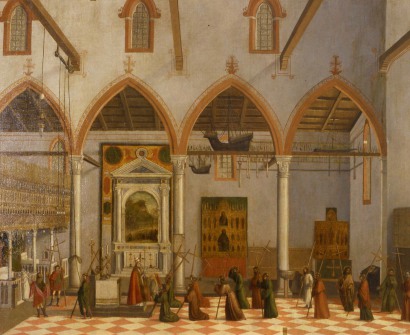 Vittore Carpaccio, ''Apparizione dei crocifissi del monte Ararat nella chiesa di Sant'Antonio di Castello'', particolare; 1512-1515, Venezia, Gallerie dell'Accademia.