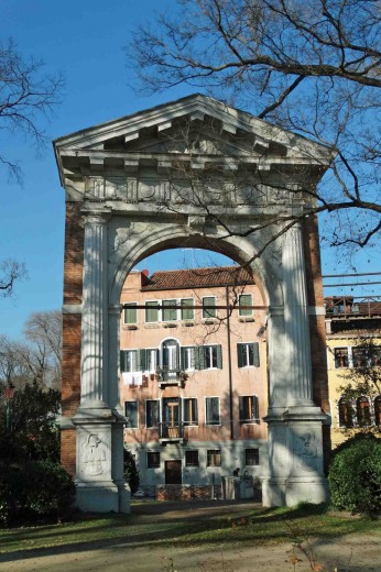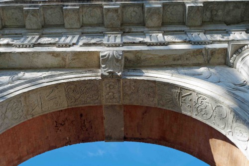 Comme mentionné précédemment, selon la conception originale sur la porte aurait dû être placé arche symbolique, dominée par la statue et le blason de la dose Antonio Grimani, mais, peut-être par manque d'argent, n'ont jamais été réalisés.