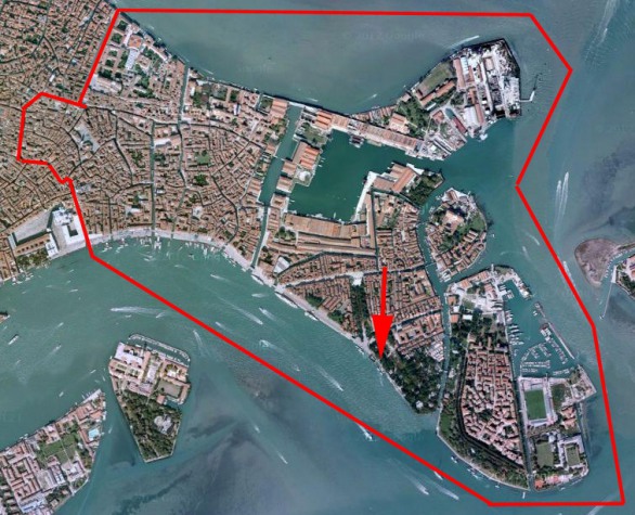 Le 29 Août 1334 le Grand Conseil concède à Marco Catapan et Cristoforo Istrigo une parcelle de terrain libre à l'extrême est de la ville, en face de l'îlot de Sant'Elena. Il fallu trois ans, pour l'assainir et la rendre constructible. En 1336, les travaux sont terminés.