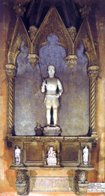 le mur: monument et le sarcophage avec les restes de vecteur Pisani († 1380), le capitaine général de Mar, vainqueur des Génois dans la guerre de Chioggia. Sa statue le montre debout tenant la bannière de Saint-Marc, sous un dais gothique (aujourd'hui à San Zanipolo).