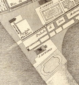 En 1546, les chanoines présenter une pétition au Conseil d'Diese de couper deux cents tolpi être enfoncé dans le sol pour construire une clôture qui entoure le jardin. Cette pétition sera renouvelée en 1570 en raison de la palissade avait été ruinée dall'ormeggio une galère de leur Contarini et, malgré cela, l'Autorité de l'Eau avait ordonné la réparation des canons. Dans la même année, conclut le côté rifabbrica du monastère »qui varda el canal."